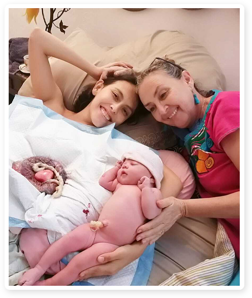 Madre de una hija que nació en casa hace 37 años y abuela de dos nietos maravillosos, también nacidos en casa y en agua.